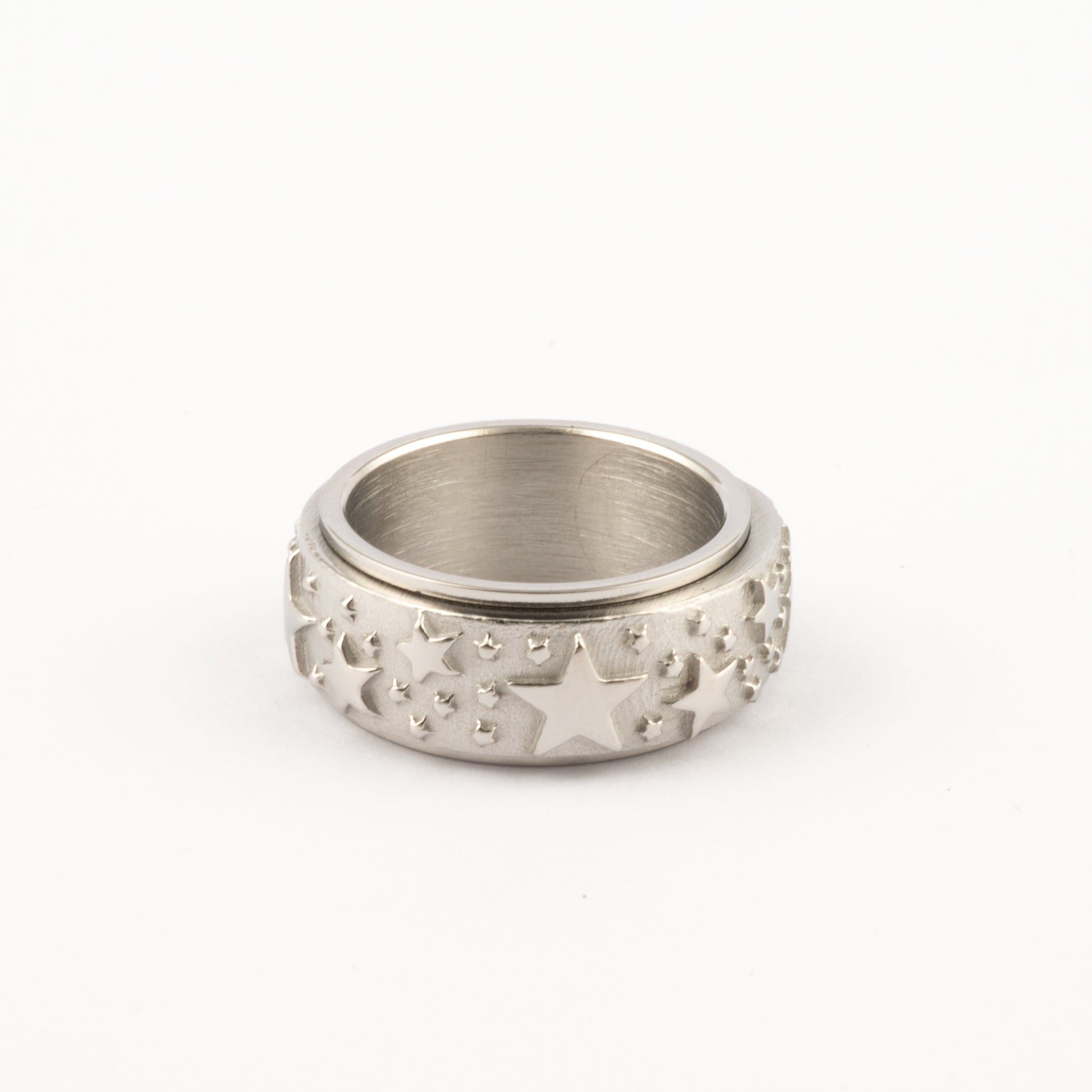 Anillo Deslizante Estrellas Relieve Plateado