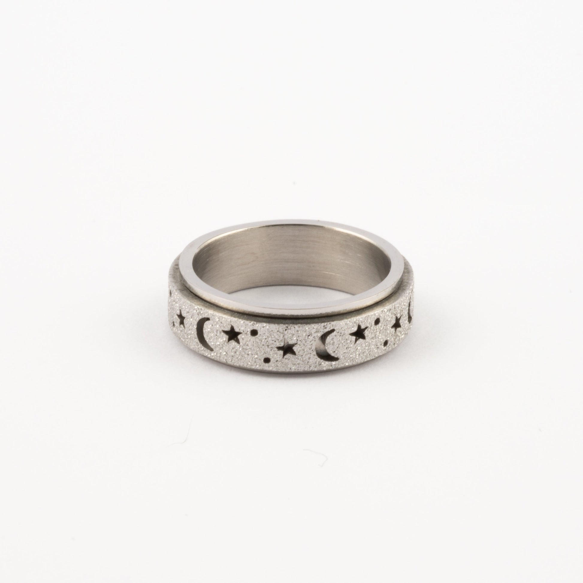 Anillo Deslizante Luna y Estrellas Aspero Plateado